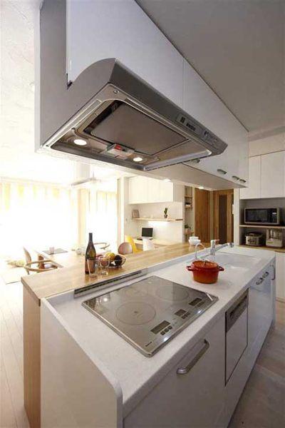 厨房设计成现下流行的开放式厨房,采用无火炉具,安全放心,十分适合家中有小孩子的家庭。炉灶对着客厅,可以一边下厨一边和客厅的客人交流。
