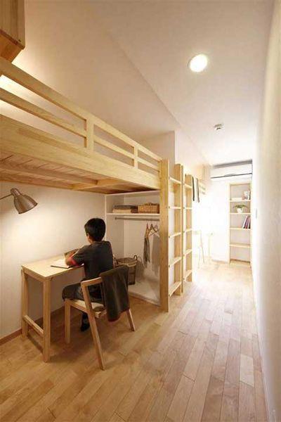 孩子的房间打造成上层床铺,下层书桌的格局,充分利用空间,而且也满足了男孩子顽皮喜欢攀爬的性格。