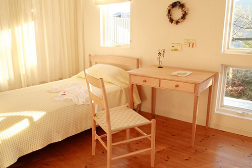 书桌兼具了床头柜的作用。去繁就简,是日式风格所崇尚的原始与简洁的体现。