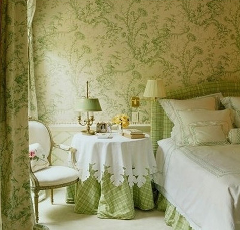 现代简约风格装修中,采用绿色搭配白色让卧室充满春天的气息,壁纸结合布艺的设计让卧室充满一种小清晰的感受。