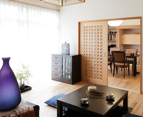 装饰Tips:温润的木色与简单的白色相搭配,营造出温馨的居家环境。网格式的白色拉门,搭配木质边框,更加深了整体的清幽气息,生活的韵味无处飘散。