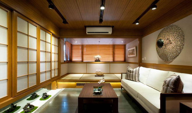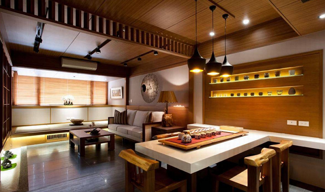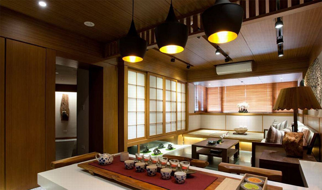 郴州装修公司:129平的居室,设计师采用日式风格的设计理念,创造了简朴安闲的氛围,建构低矮的水平线,通过日式推拉门、榻榻米、茶具、卷帘等典型的日式风格代表物,将禅意之风展现得淋漓尽致。让人仿佛真正置身古式建筑,给人更宽广的冥想空间。