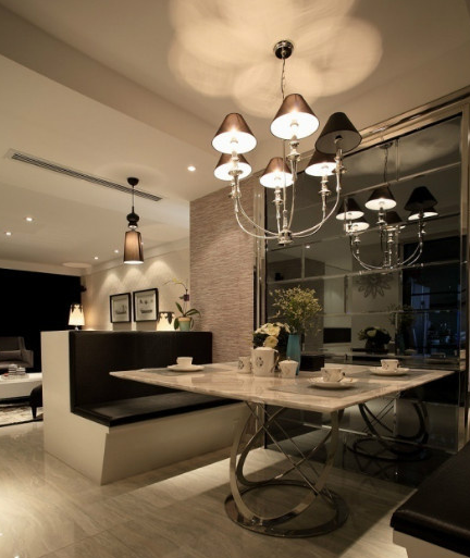 餐厅装修方案采用类似于吧台的方式,给人稀奇浪漫时尚的感受。