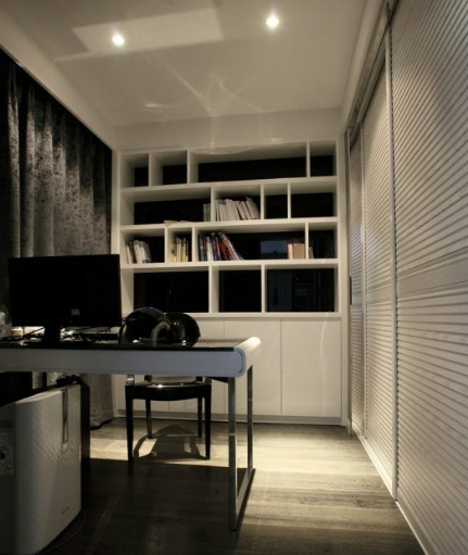 书房装修设计中,较少使用黑色。因为不想人啊这里产生压抑的干死了后。以免影响看书人的心情,展现了设计师的经验丰富。