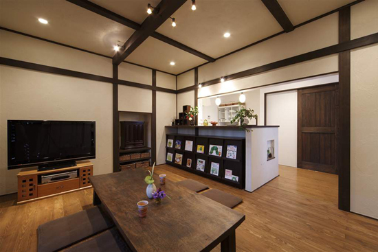 装修TIPS:纹理清晰的木质地板,仿佛记载着主人生活的点点滴滴。长方形的木质茶几,木纹斑驳,做旧的样式,将日式的复古气息演绎的淋漓尽致。