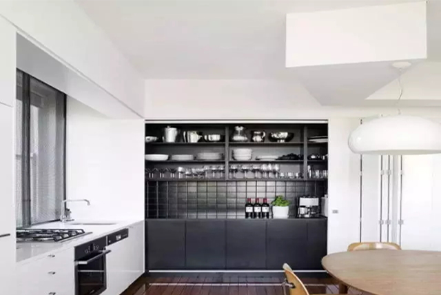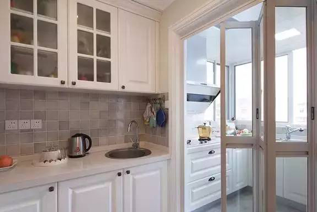 如果家里够大,在户型改造的时候,适当扩大厨房区域,用玻璃门分隔出西厨和中厨,既隔离油烟又增加了储物空间。